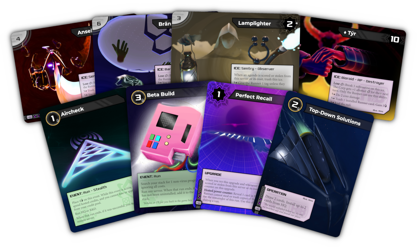 I reused a couple assets from the game to make some Netrunner alt arts. If you want to buy a set for yourself, I’m selling them on MPC!